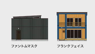 土地の形により、(上から見て)L字のワンダーデバイスにしたいという要望はすべからく対応不可となります。FC店だったら、自社物件で受けてワンダーデバイス風なL字の家をご提案すると思います。ワンダーデバイスの基本的な形の変更はできないとお考えいただきたいです。ただ、最近は通称ファントムフランク(フランクファントム)といわれる、フランクフェイスなんだけど、ファントムマスクみたいな混ざり合った家は、建てられているので、それは可能なようです。
