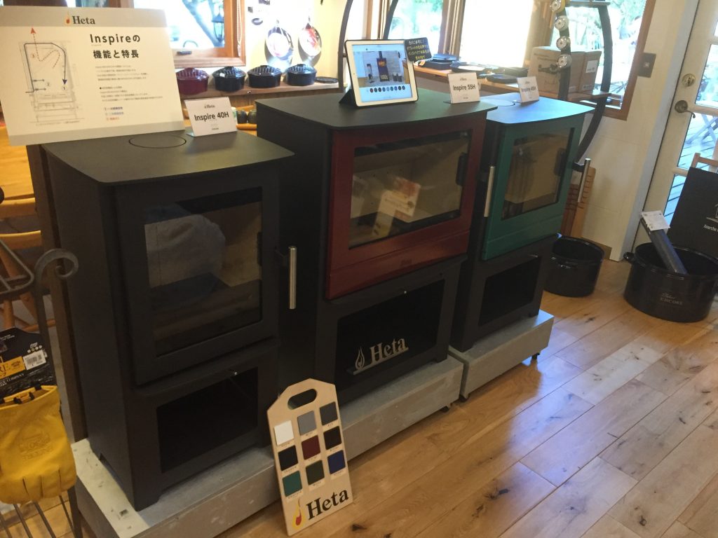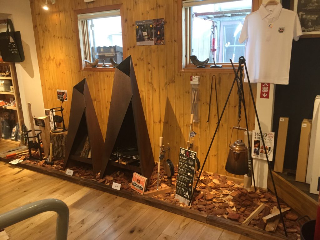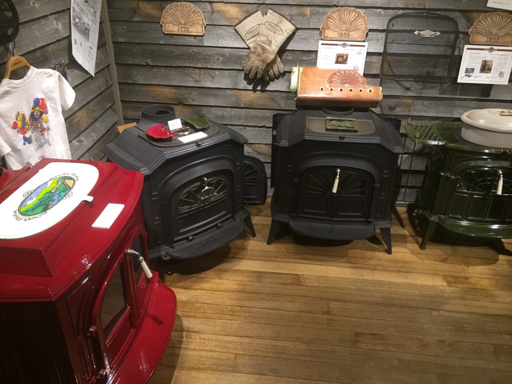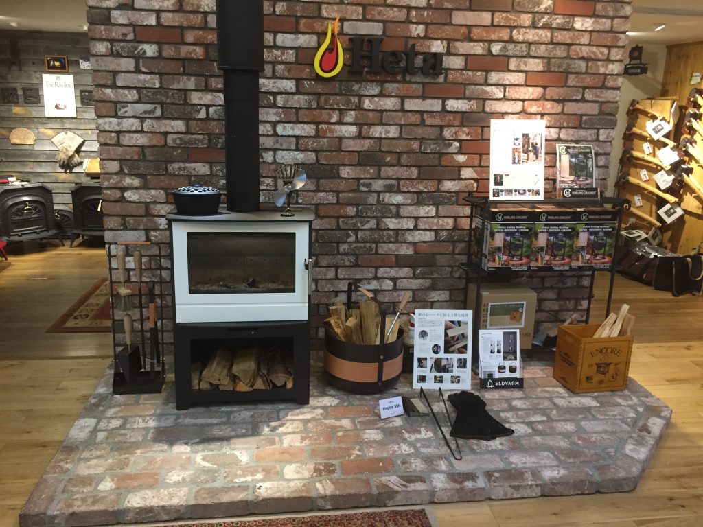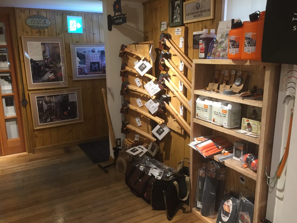 店内は、雑貨とアウトドアのお店なのですが、奥の方にいくと、薪ストーブの殿堂があります。行ってみましょう。